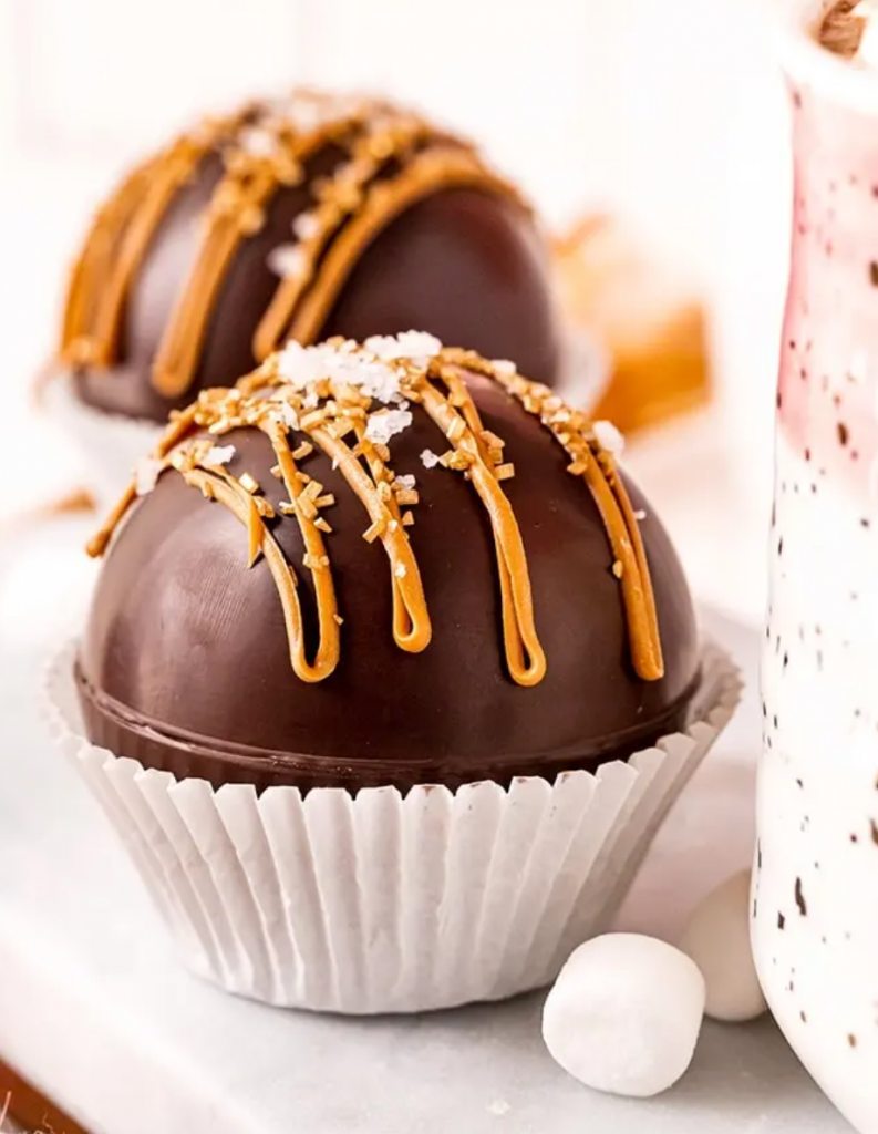 Our newest creation – Lucky Charms inspired hot cocoa bombs! Lucky Charms marshmallows inside a white chocolate shell filled with bursting strawberry flavor!